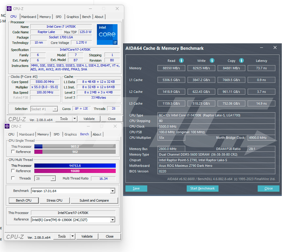 14700K頻率實機普遍都維持在5.5Ghz Pcore,4.3Ghz Ecore 單核心最高可達5.6GHZ