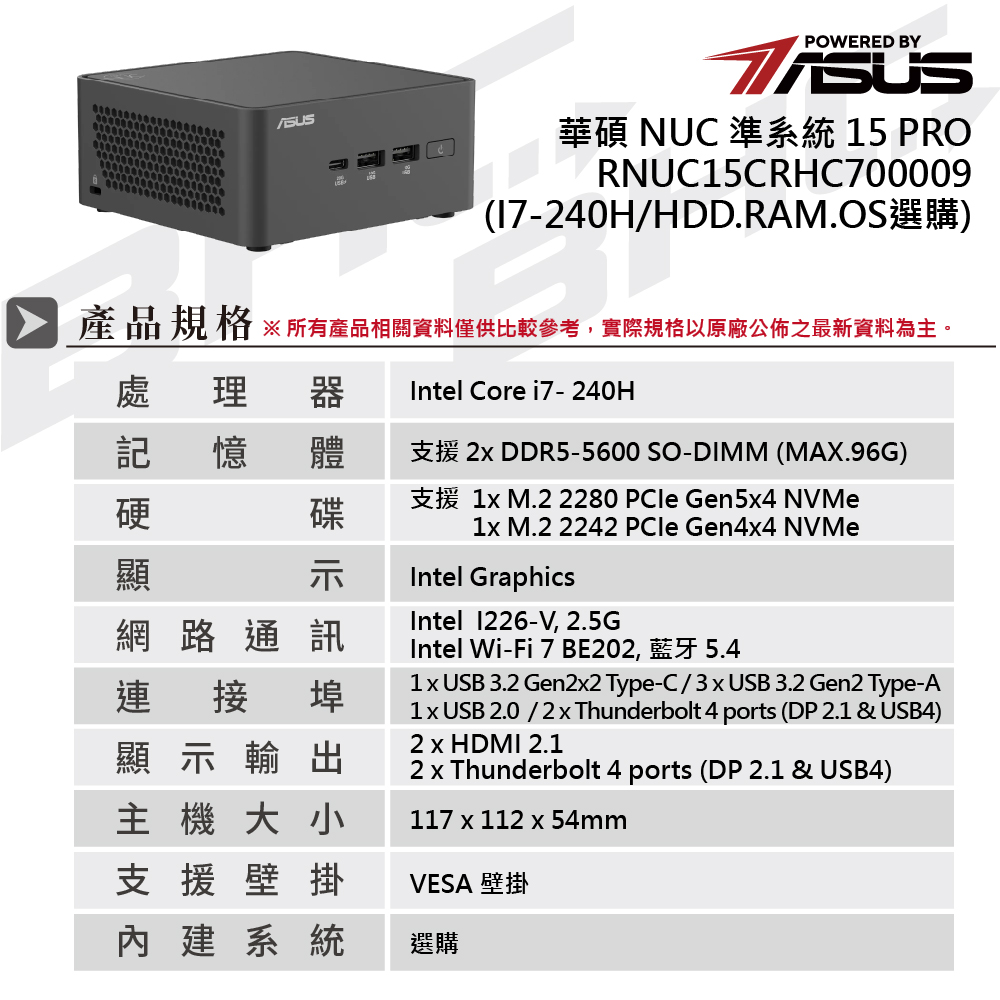 華碩 NUC 準系統 15 PRO RNUC15CRHC700009 (I7-240H/HDD.RAM.OS選購)