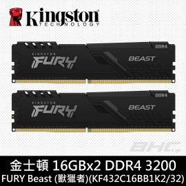 金士頓 32GB(16G*2) DDR4-3200 FURY Beast (獸獵者)(KF432C16BBK2/32)