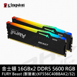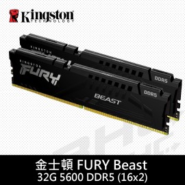 金士頓 32GB(16Gx2) DDR5-5600 FURY Beast[CL36](KF556C36BBK2/32)【具XMP、EXPO】