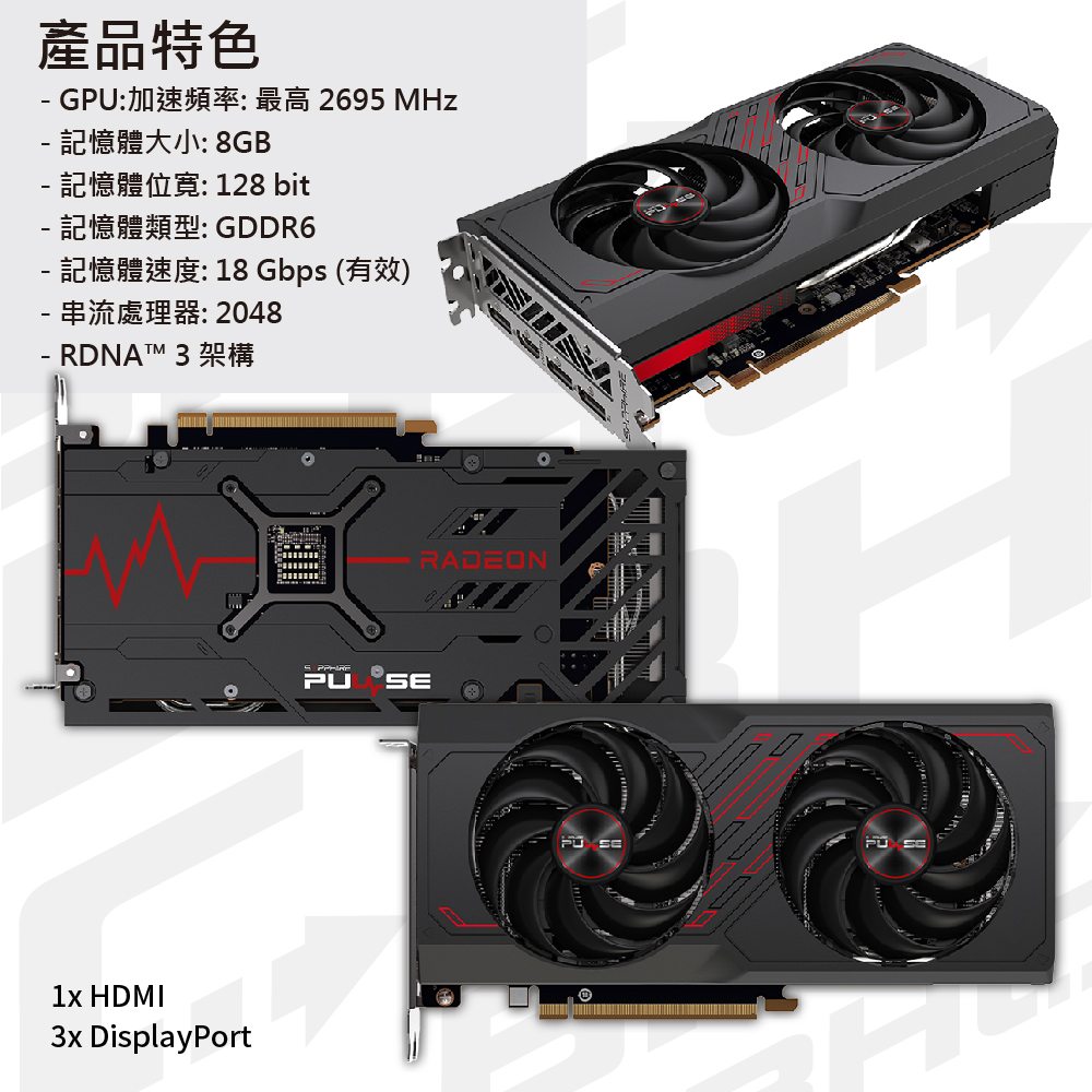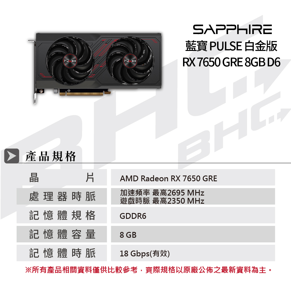 SAPPHIRE 白金版 PULSE RX7650 GAMING 8G D6(25cm/雙風扇)
