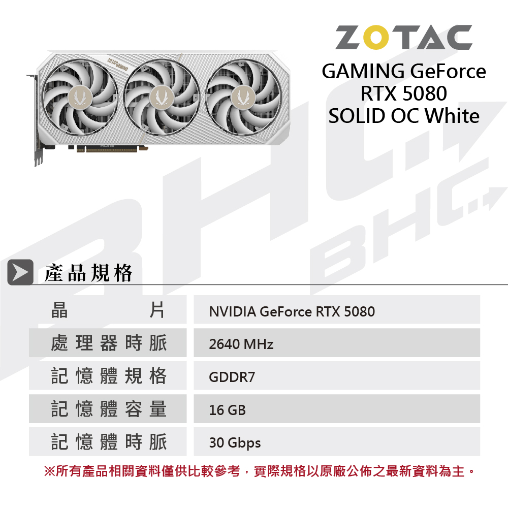 ZOTAC RTX5080 SOLID OC White Edition 16G(33cm/三風扇/白/註冊5年)