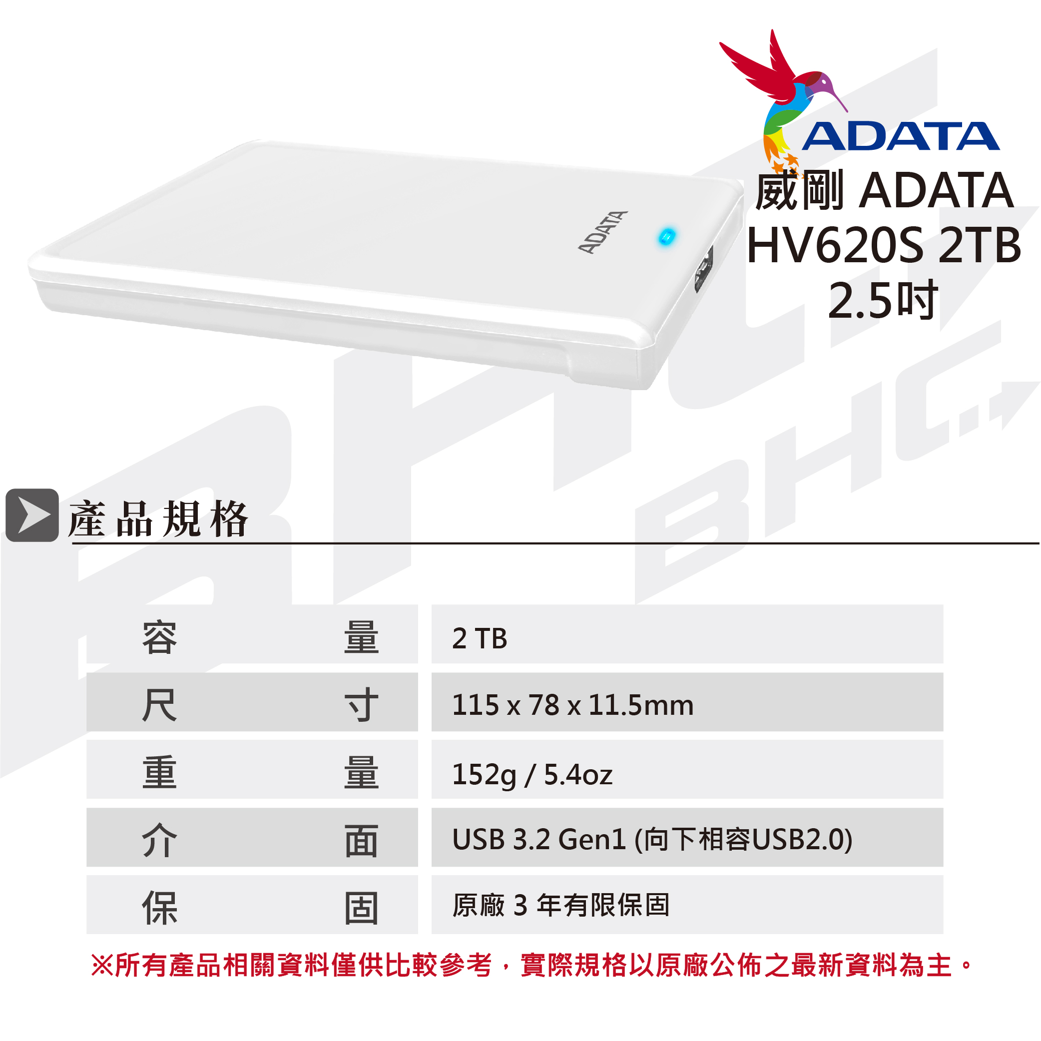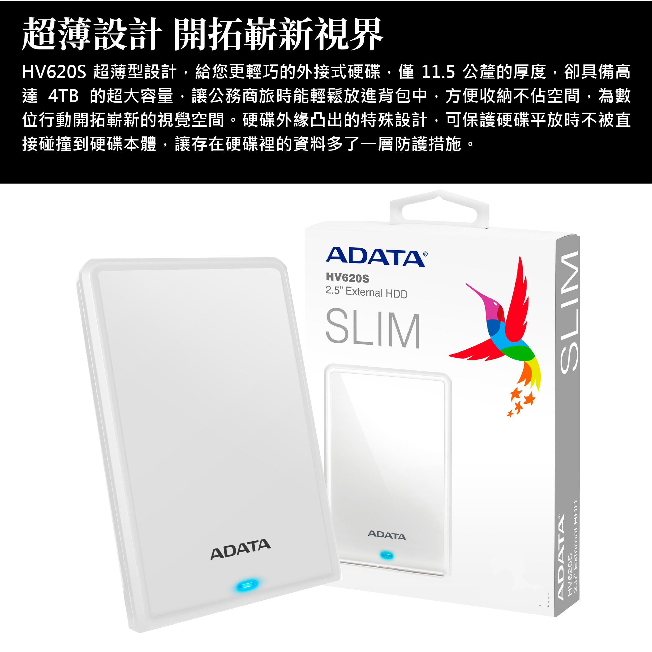 ADATA 威剛 HV620S 2TB/U3 2.5吋外接式硬碟《白》