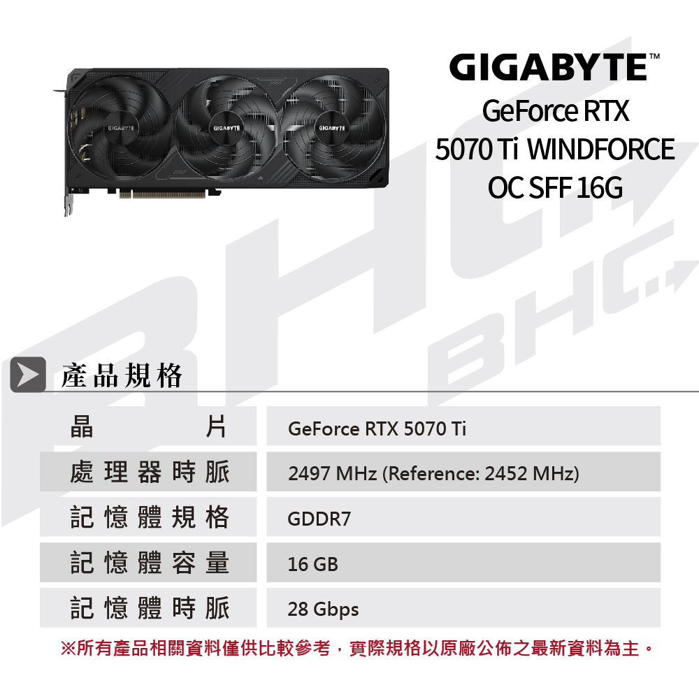 【限搭主機板】技嘉 RTX5070Ti WINDFORCE OC SFF 16G(31cm/三風扇/註冊4年保