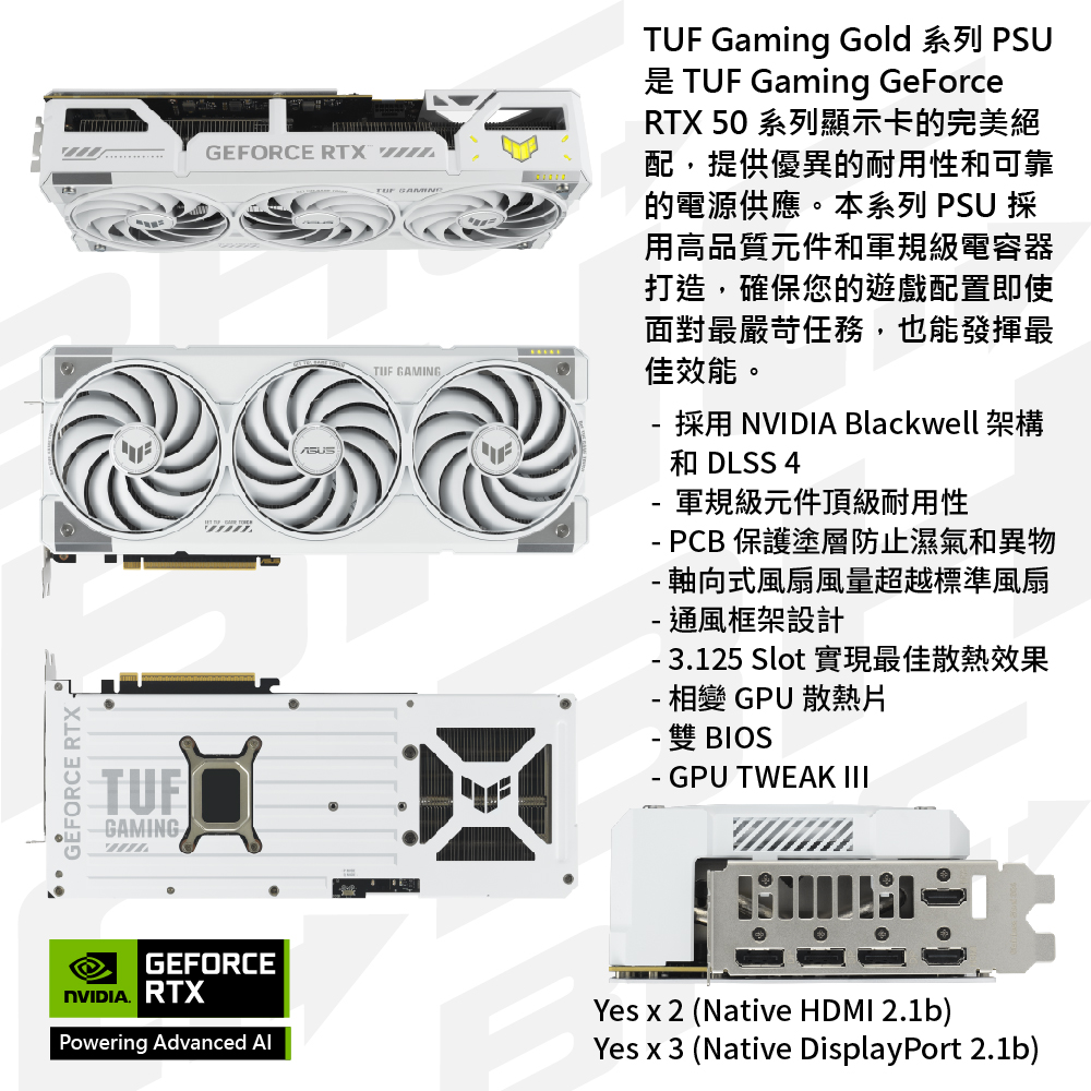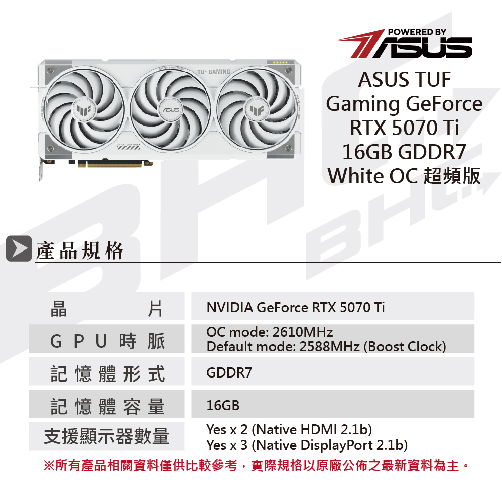 華碩 TUF GAMING RTX5070Ti OC 16GB WHITE GAMING(33cm/三風扇/註冊5年保)