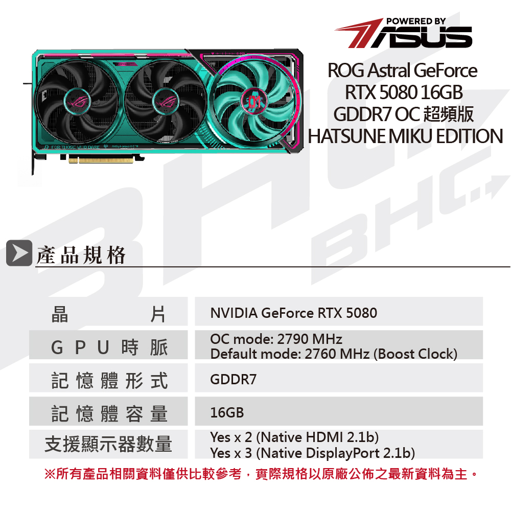 華碩 ROG ASTRAL RTX5080-O16G HATSUNE MIKU EDITION(初音聯名款)