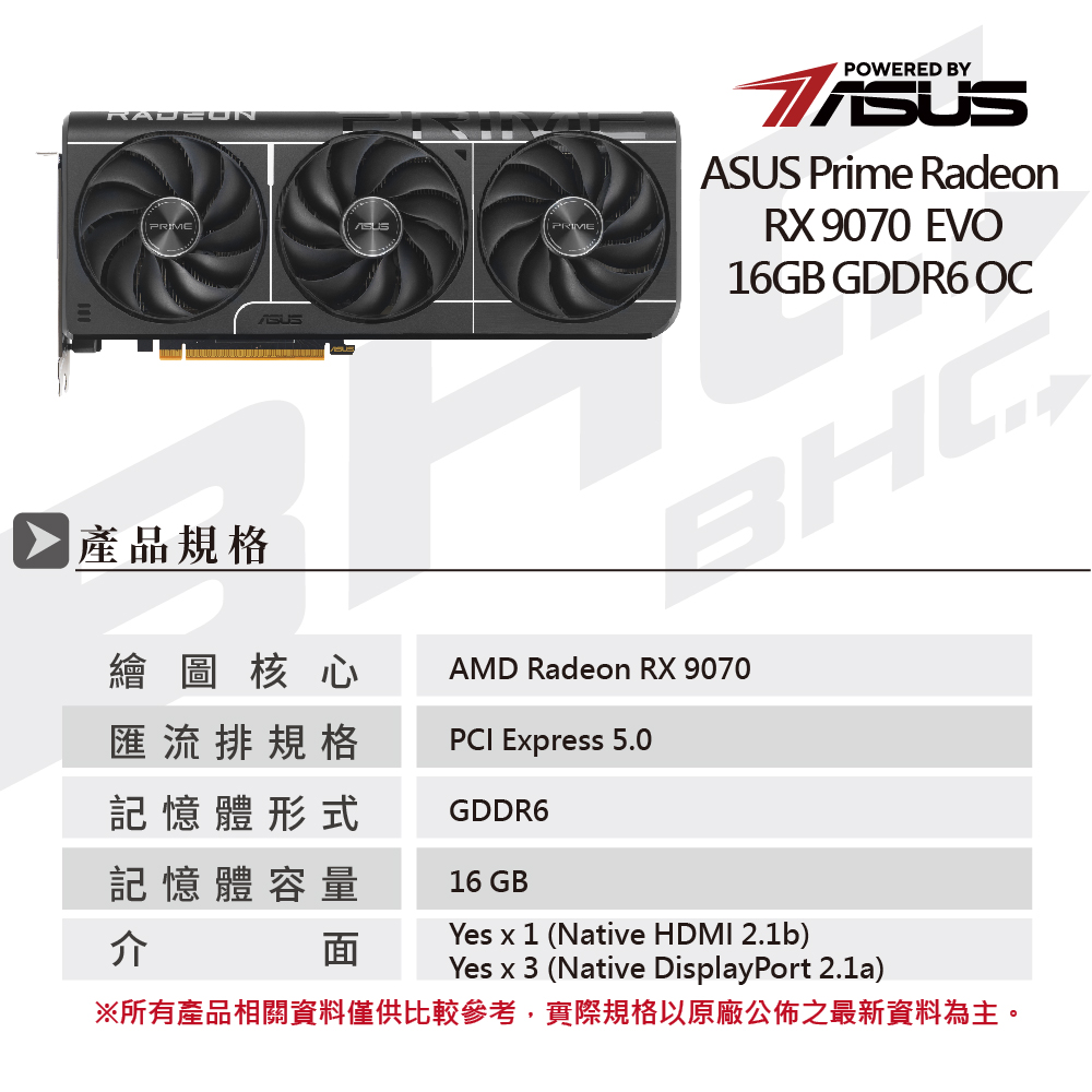 華碩 PRIME-RX9070-O16G-EVO(32cm/三風扇/註冊5Y)