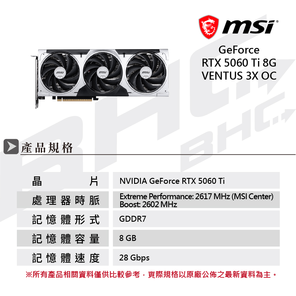 MSI微星 RTX 5060 Ti 8G VENTUS 3X OC