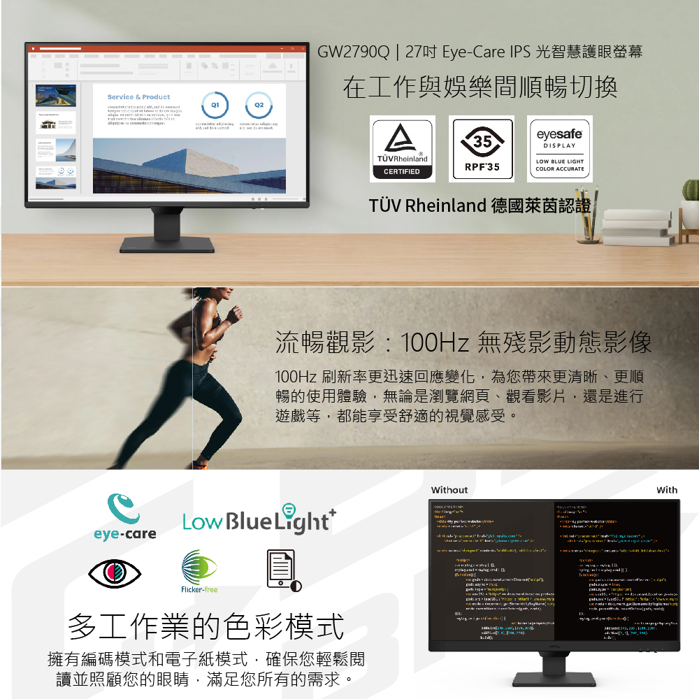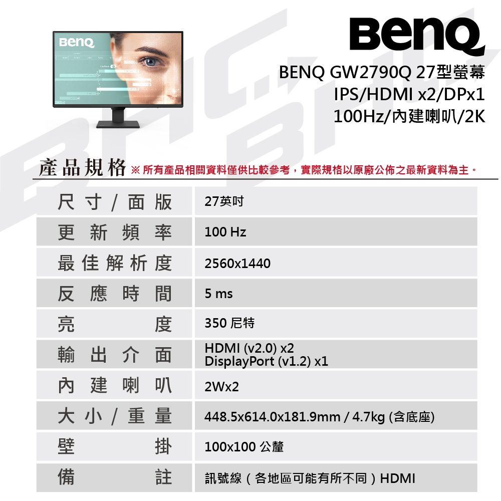 BENQ GW2790Q (HDMI 2.0*2/DP1.2*1/100Hz/內建喇叭)27吋IPS 2K液晶螢幕