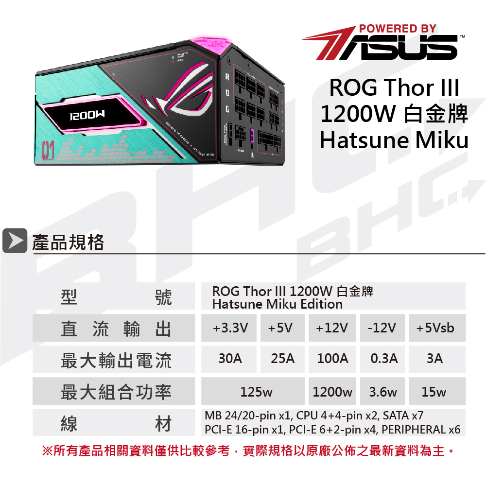 華碩 ROG-THOR-1200P3-MIKU(初音聯名款)