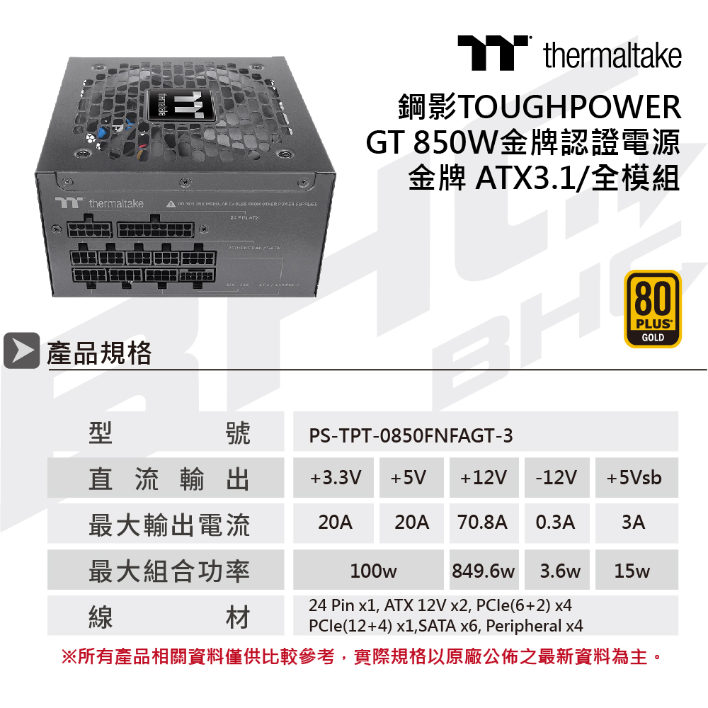 曜越 TOUGHPOWER GT 850W 金牌 ATX3.1/全模組/5年保原廠升10Y