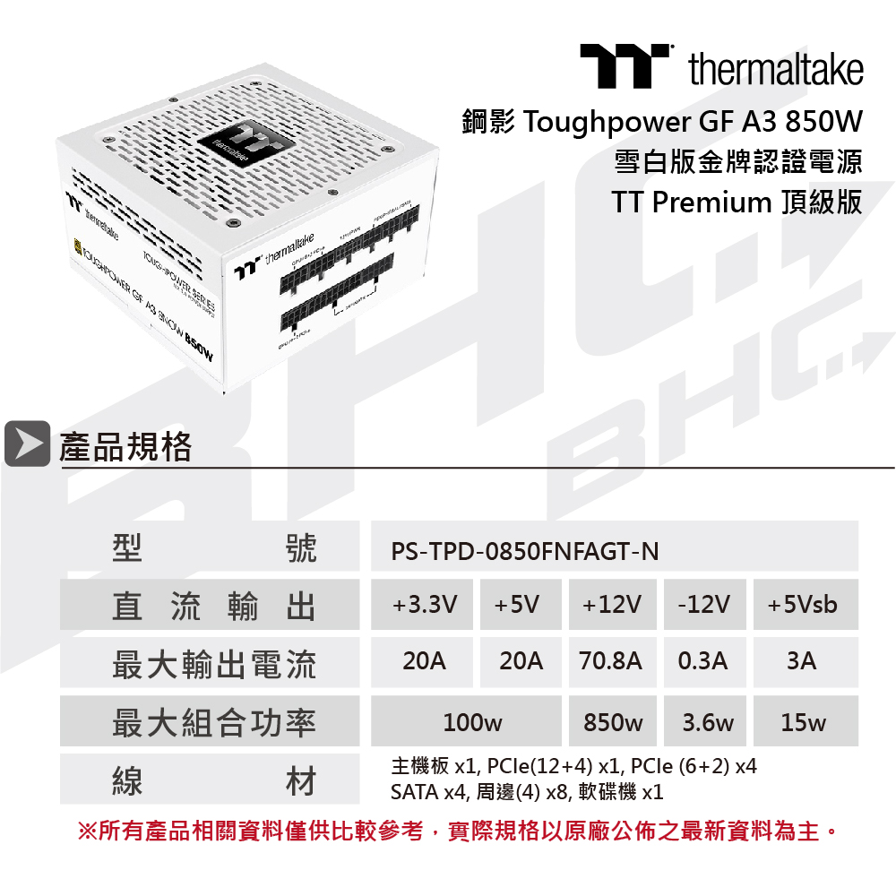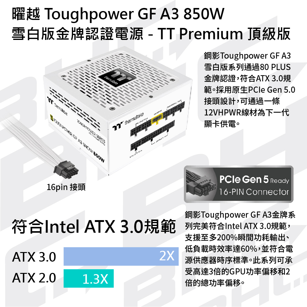 曜越 GF A3 SNOW 850W 金牌 ATX3.1(PCIe5.0)/金牌/主日系/全模/10Y