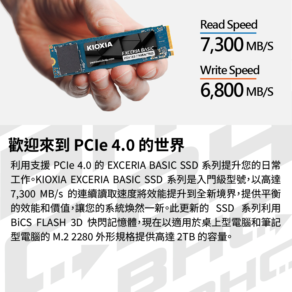 [限搭板組裝]鎧俠 Exceria BASIC 2TB Gen4(W:7200/R:6600)/5Y
