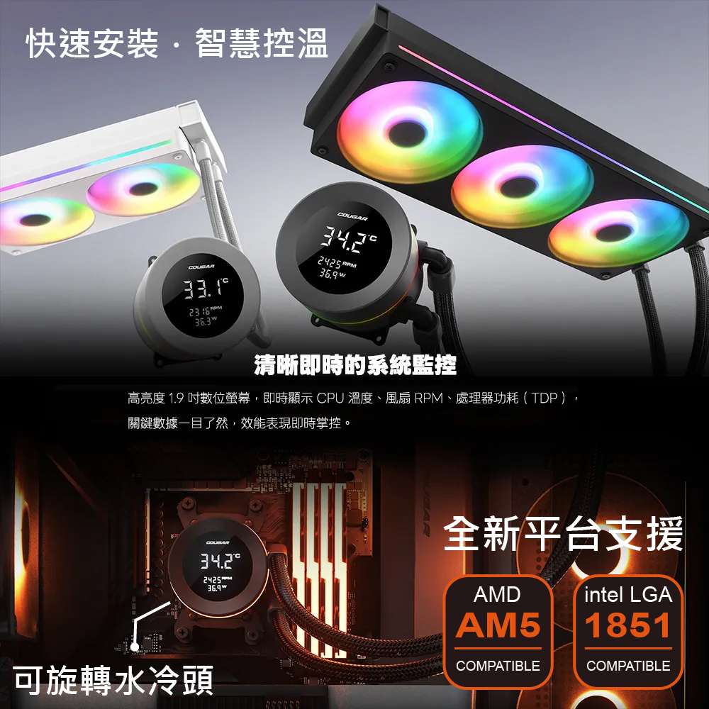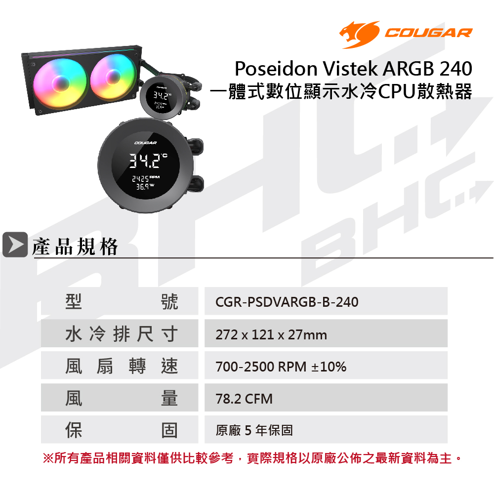 美洲獅 COUGAR Poseidon Vistek 240 ARGB 黑