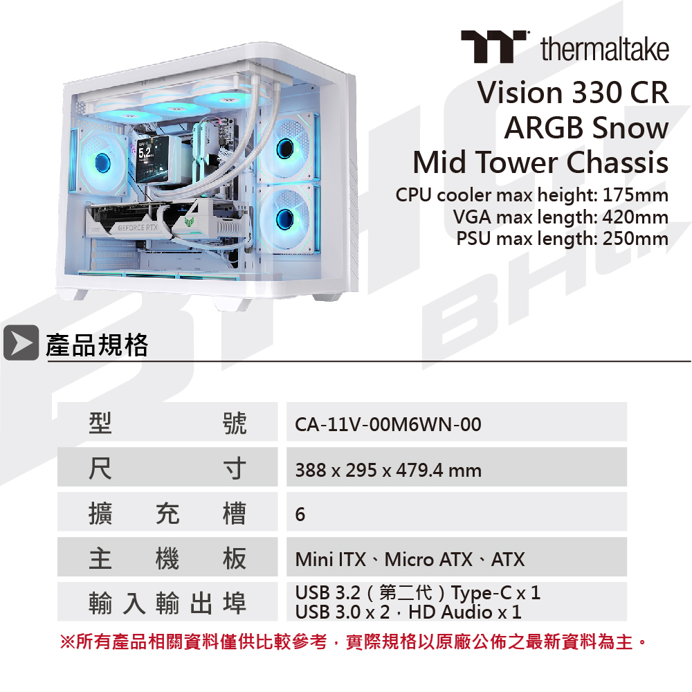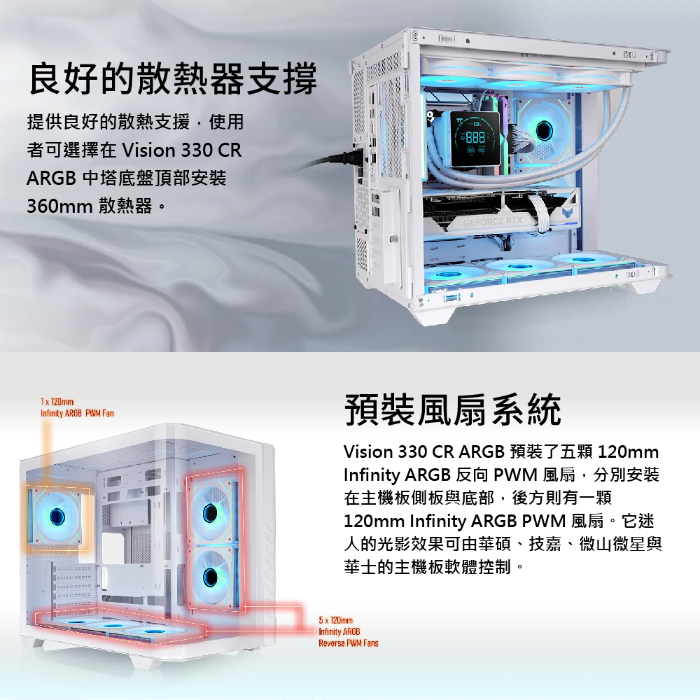 曜越 Vision 330 CR ARGB 中直立式機殼 雪白