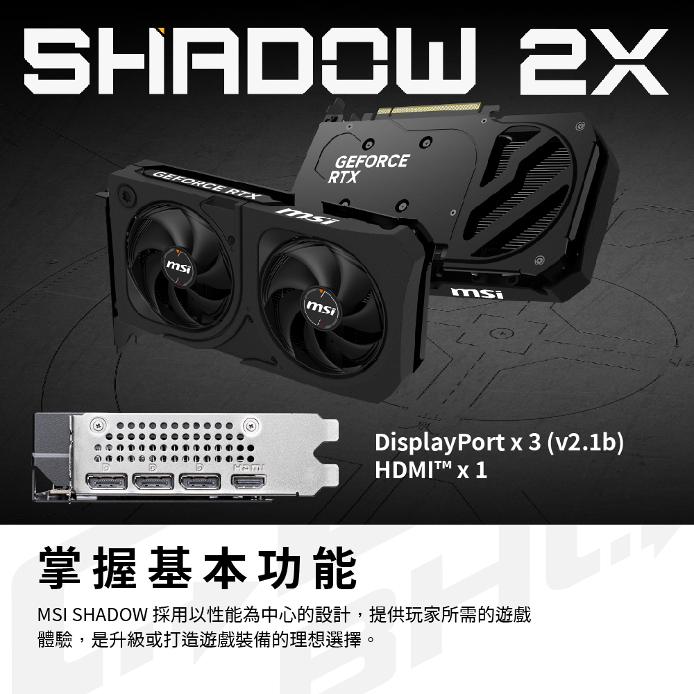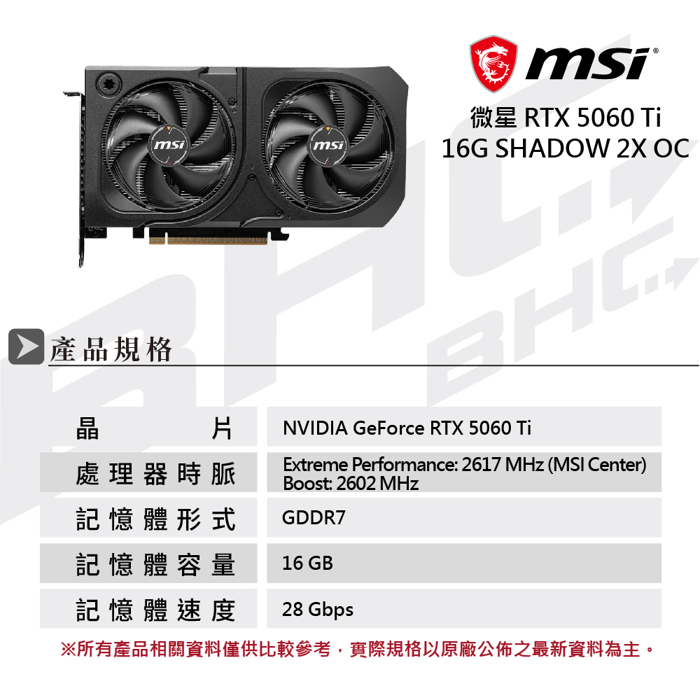 MSI微星 RTX 5060 Ti 16G SHADOW 2X OC PLUS(23cm/雙風扇/註冊4年)