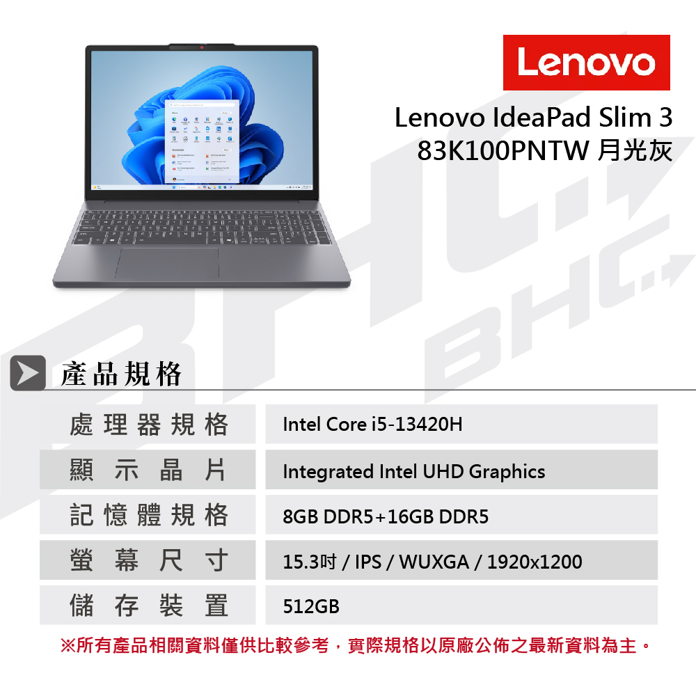 》型 號:聯想 Lenovo IdeaPad Slim 3 15IRH10 83K100PNTW (月光灰)