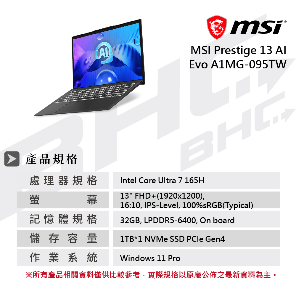 》型 號:微星 Prestige 13 AI Evo A1MG-095TW AI長效美型筆電
