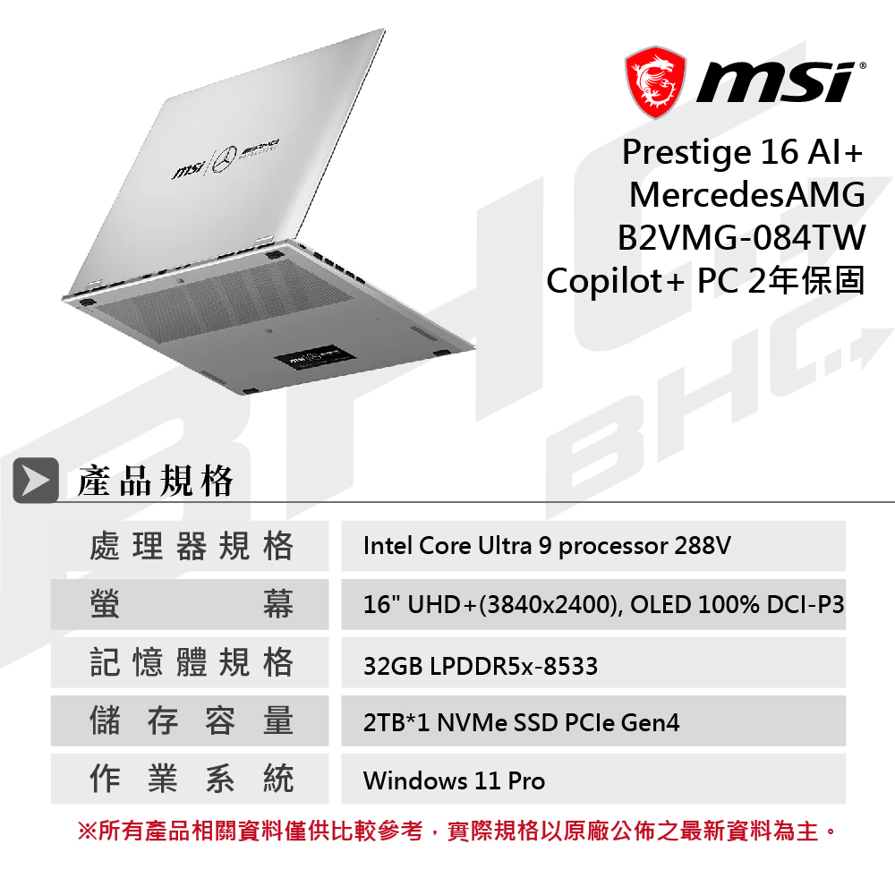 》型 號:微星 Prestige 16 AI+ MercedesAMG B2VMG-084TW AI筆電