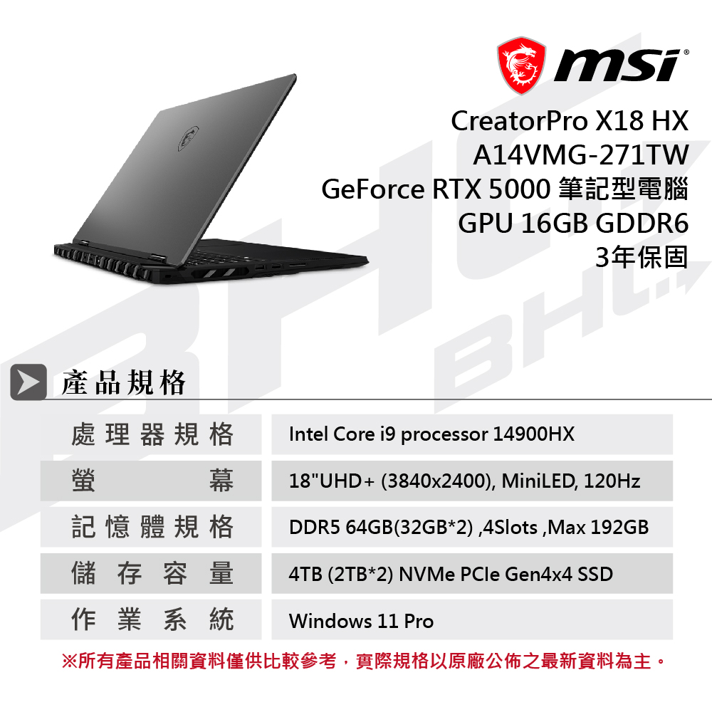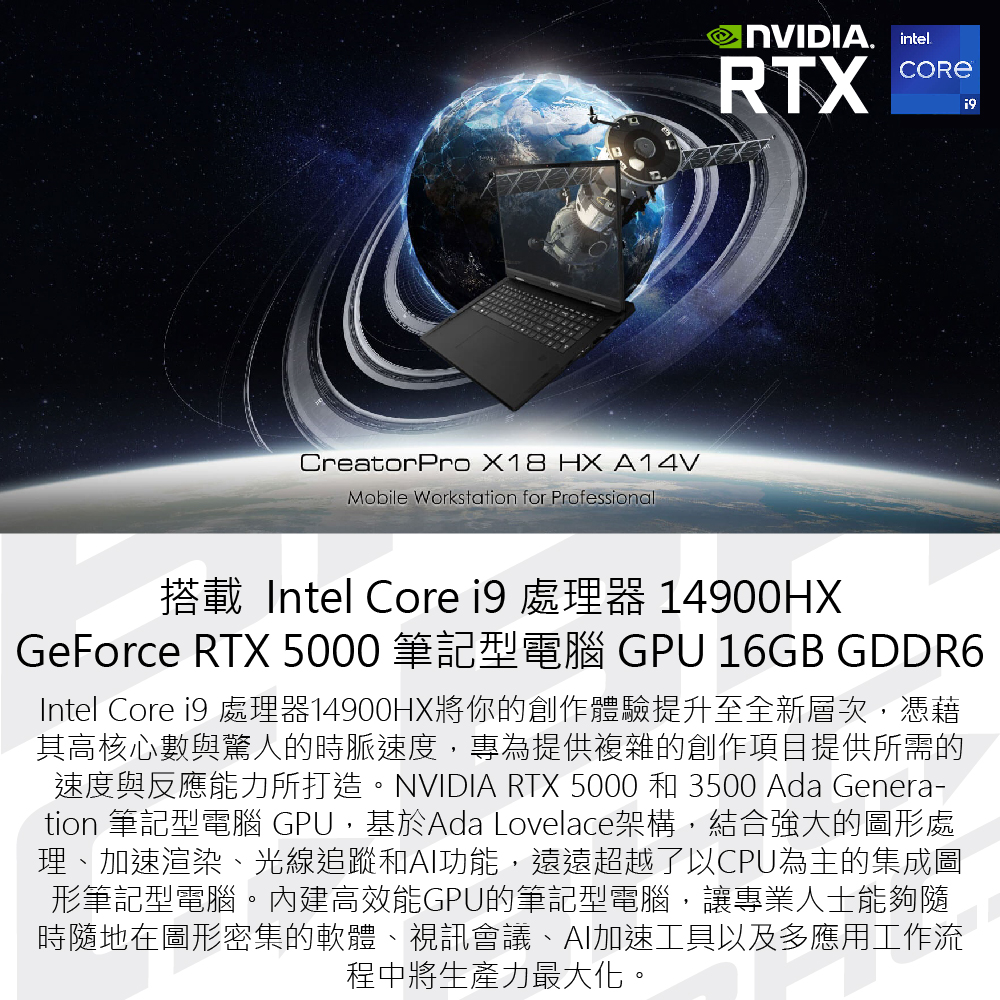 》型 號:微星 CreatorPro X18 HX A14VMG-271TW 纖薄創作者工作站筆電