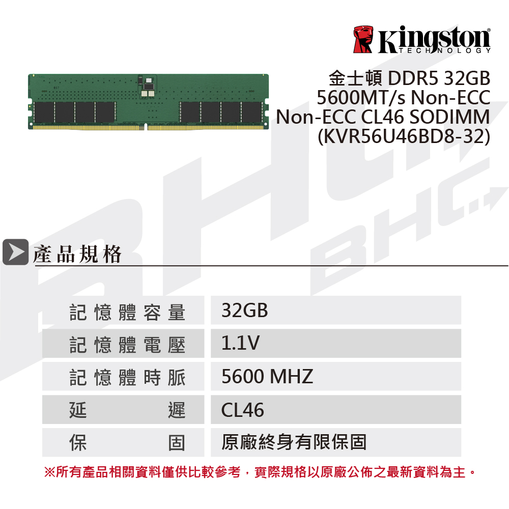 [限搭板]金士頓 32G DDR5 5600/CL46[KVR56U46BD8-32]