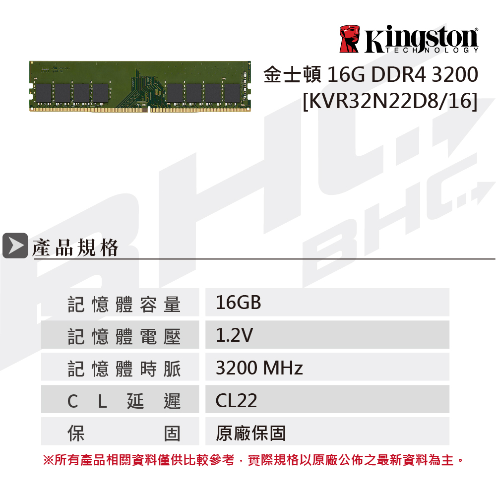 金士頓 16G DDR4 3200[KVR32N22D8/16]
