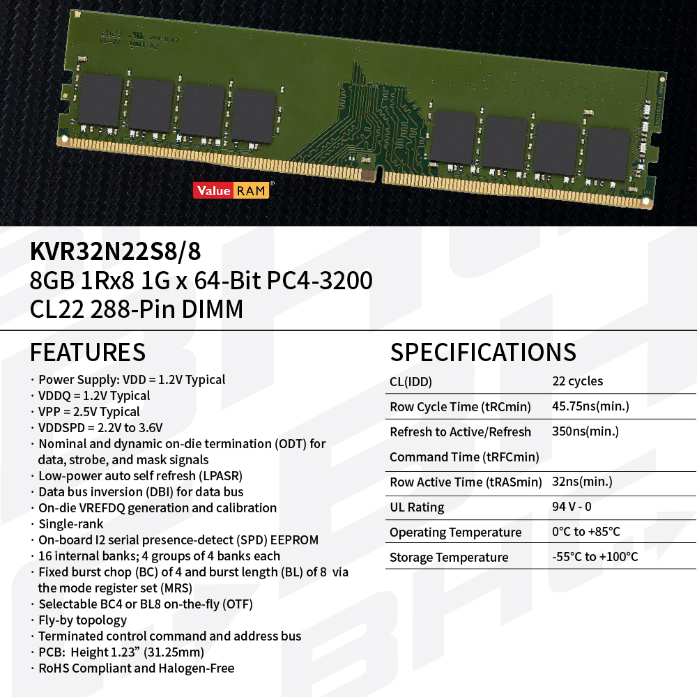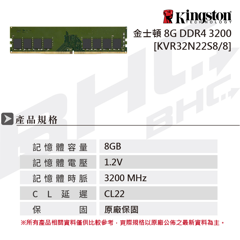 金士頓 8G DDR4 3200 [KVR32N22S8/8]