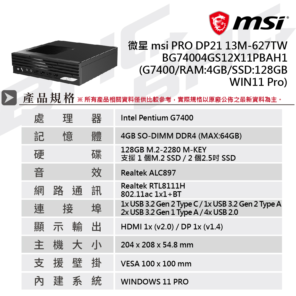 微星 msi PRO DP21 13M-627TW-BG74004GS12X11PBAH1(G7400/RAM:4GB/SSD:128GB/WIN11 Pro)