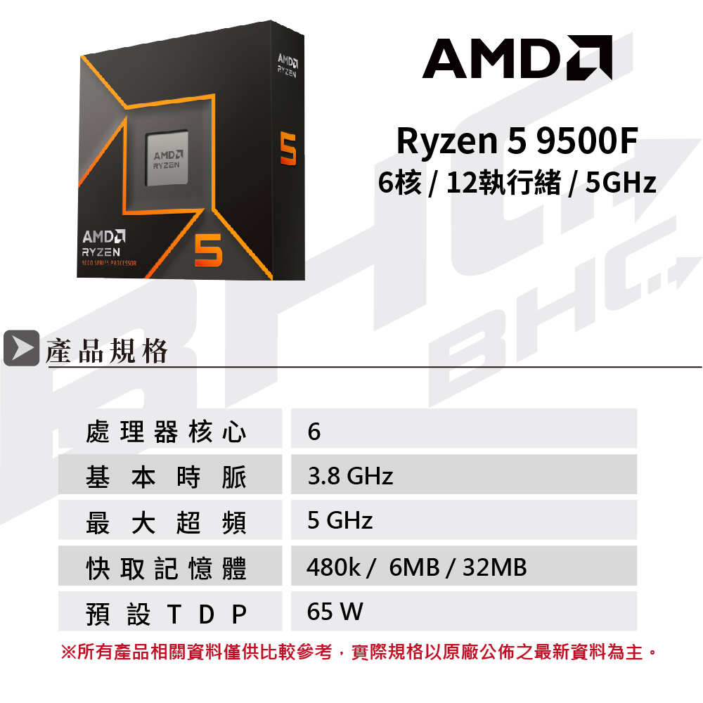 AMD Ryzen5 9500F MPK 六核心處理器 3.8GHz(Turbo 5.0G) /32M/65W