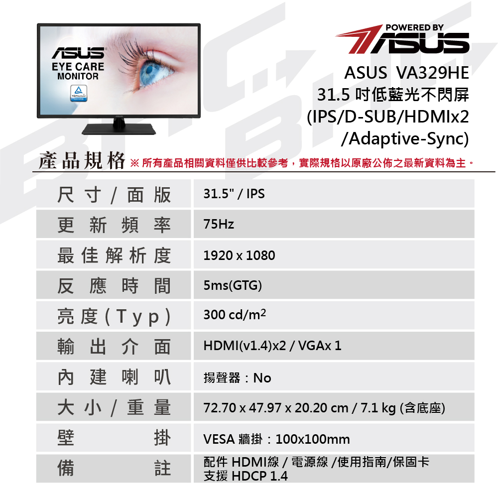 華碩 VA329HE (D-SUB/ HDMI*2/IPS面板)低藍光、不閃屏