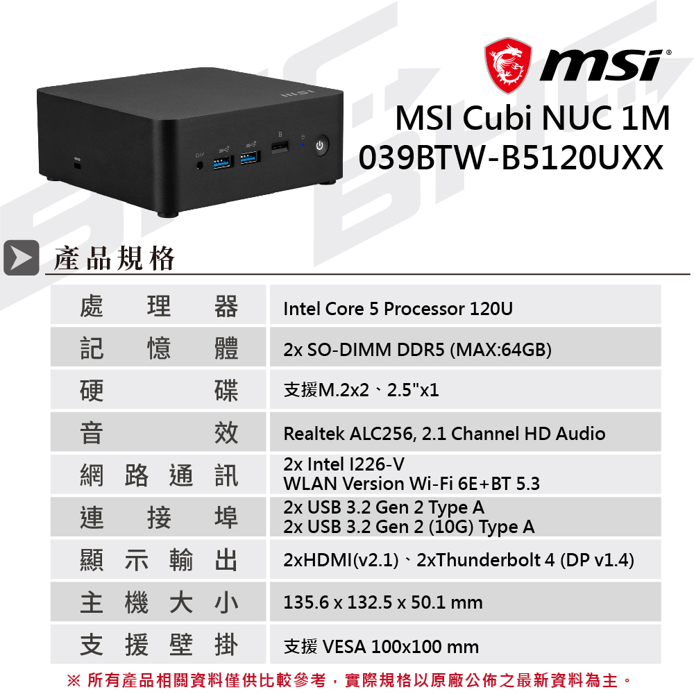 [搭購價]微星msi Cubi NUC 1M-039BTW-B5120UXX(i5-120U/SSD.RAM.HDD.OS選購)