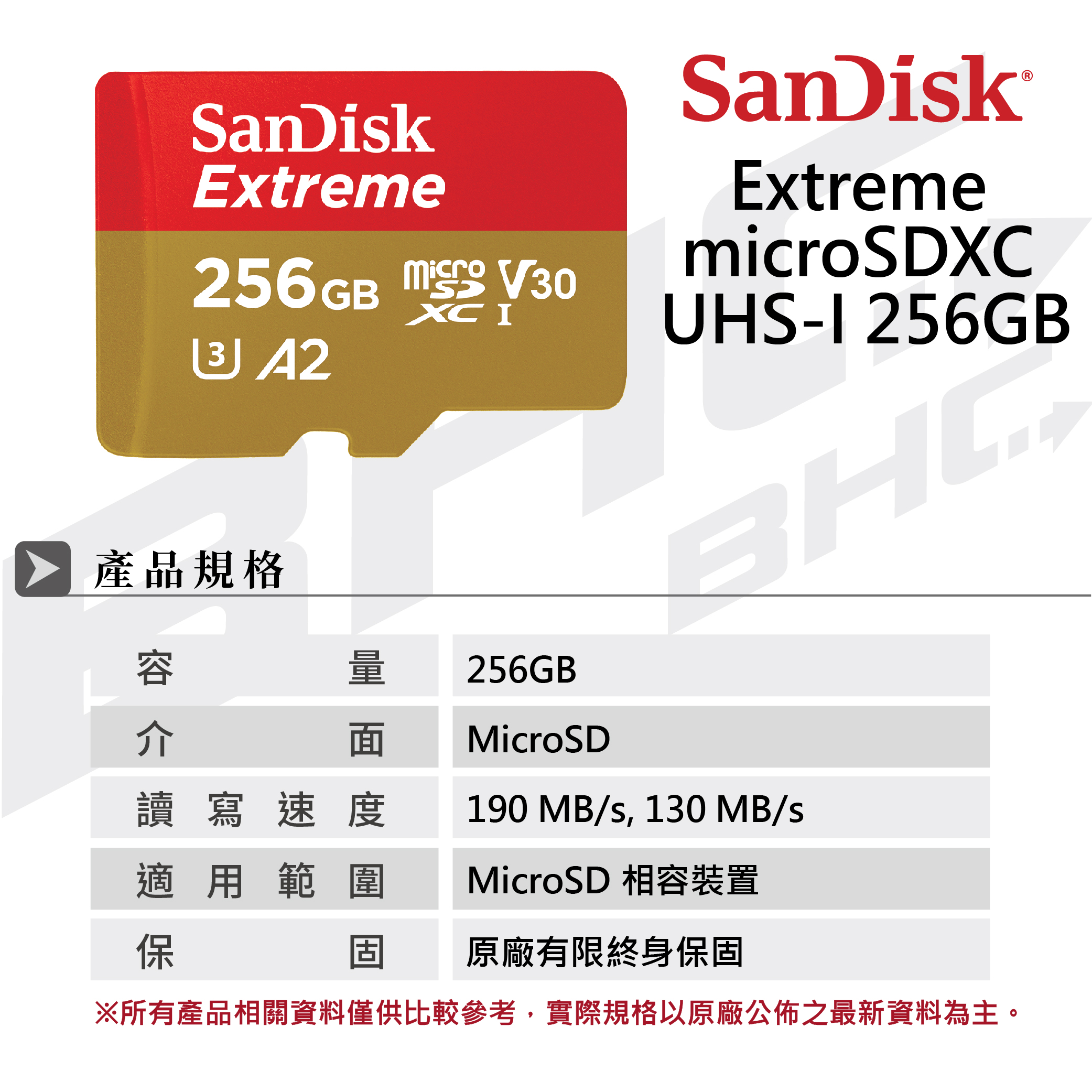 SanDisk Extreme Micro SDXC A2 256G/C10/A2/190MB 130MB/s