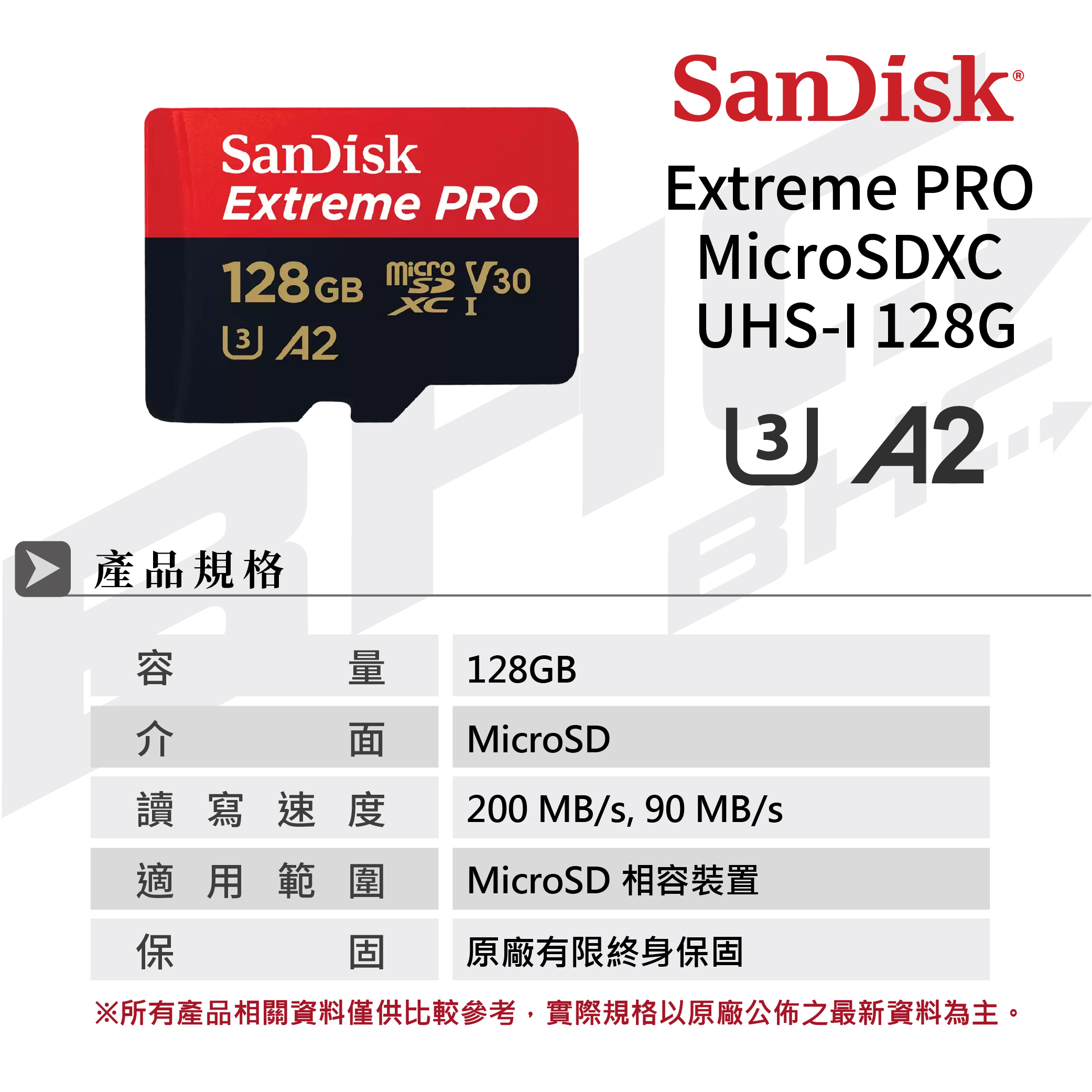 SanDisk Extreme Pro Micro SDXC 128G A2/C10/A2/200MB 90MB/s