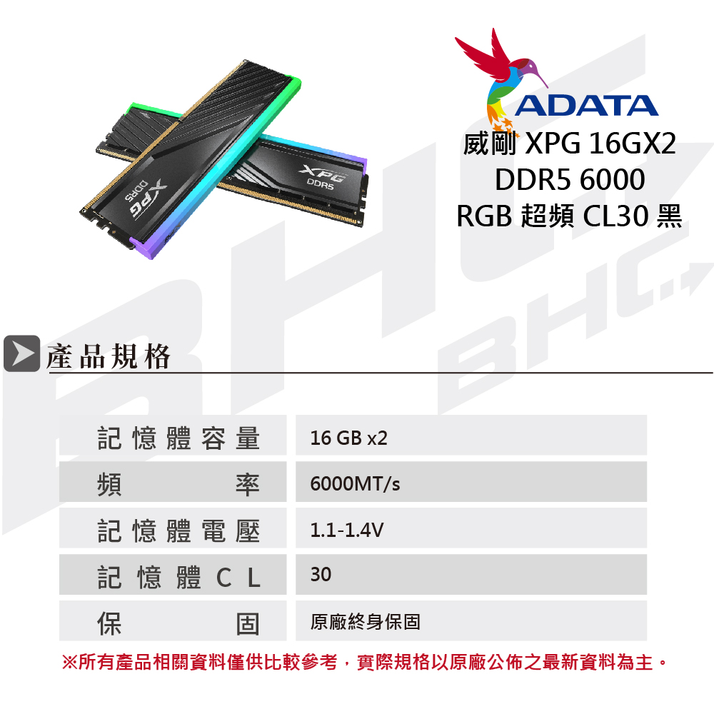 威剛 XPG 16GX2 DDR5 6000 RGB 超頻 CL30 黑