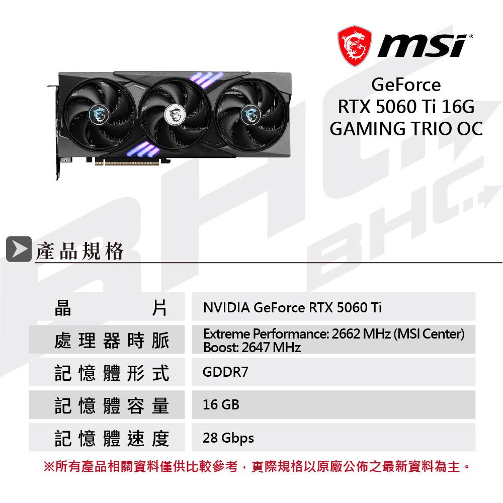 MSI微星 RTX 5060 Ti 16G GAMING TRIO OC(30cm/三風扇/註5年)