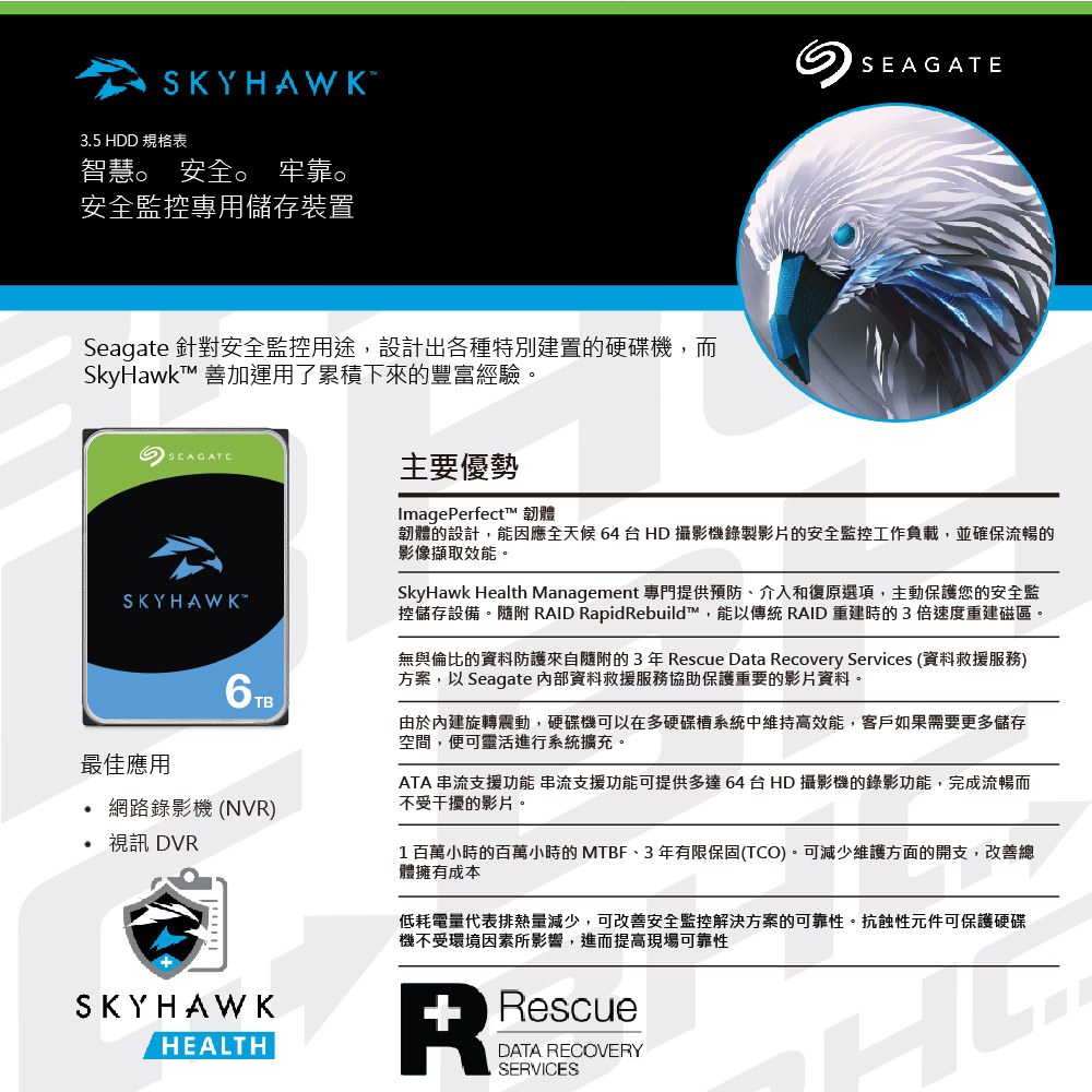 [限組裝]希捷 Seagate 6TB(監控鷹) 5400轉/256M/SkyHawk/3Y(ST6000VX009)