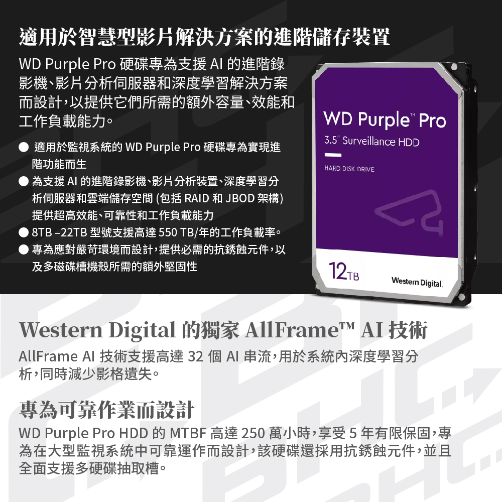 威騰 WD 12TB /512M/7200R/PURZ/紫標PRO/5年保(WD122PURP)