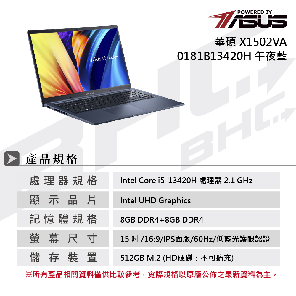 》型 號:華碩 Vivobook 15 X1502VA-0181B13420H (午夜藍)