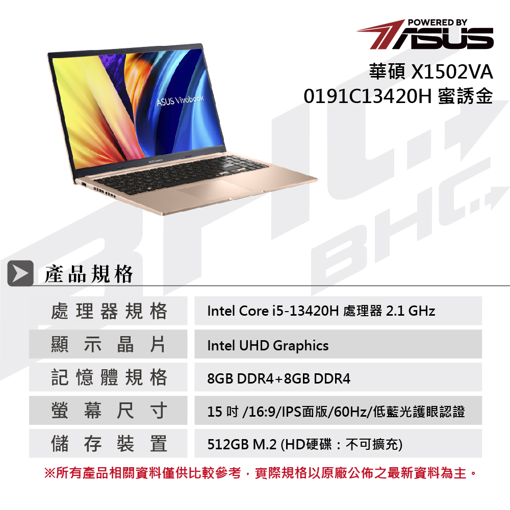 》型 號:華碩 Vivobook 15 X1502VA-0191C13420H (蜜誘金)