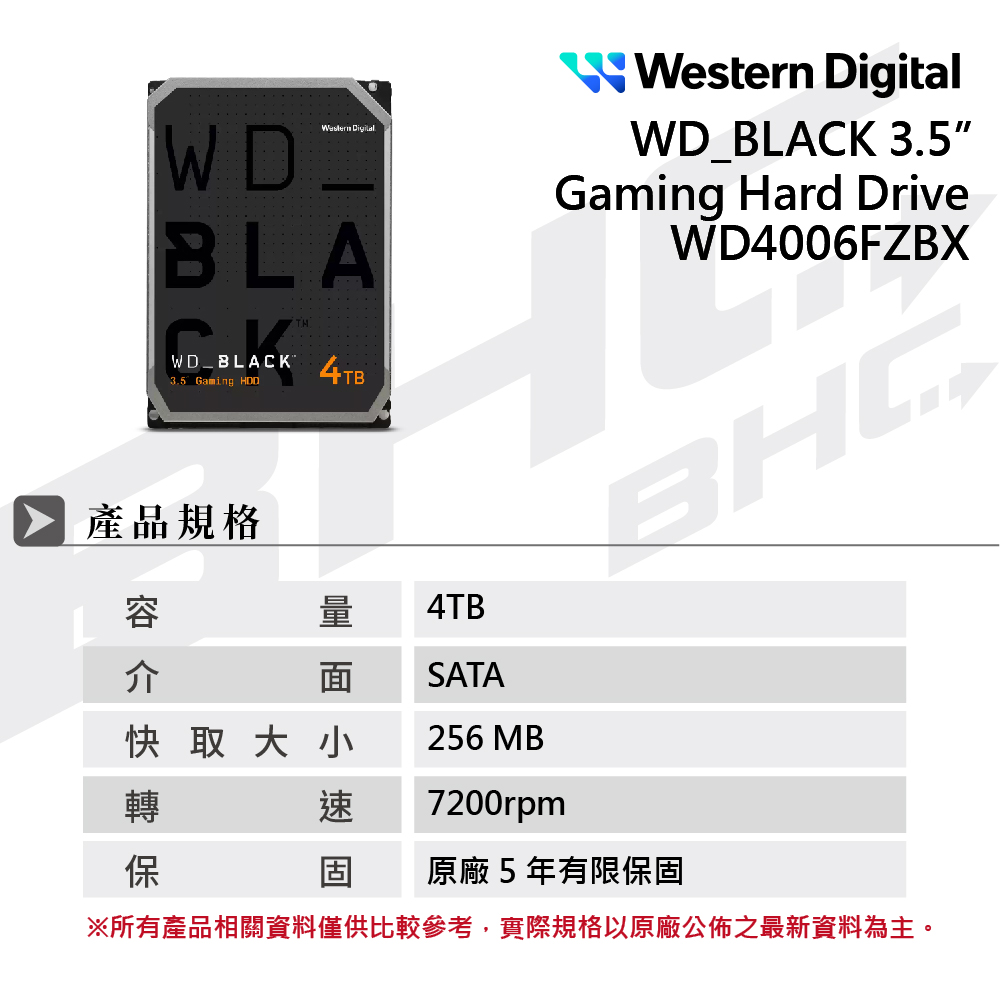 [限組裝]威騰 WD 4TB 7200轉/黑標/5Y【WD4006FZBX】
