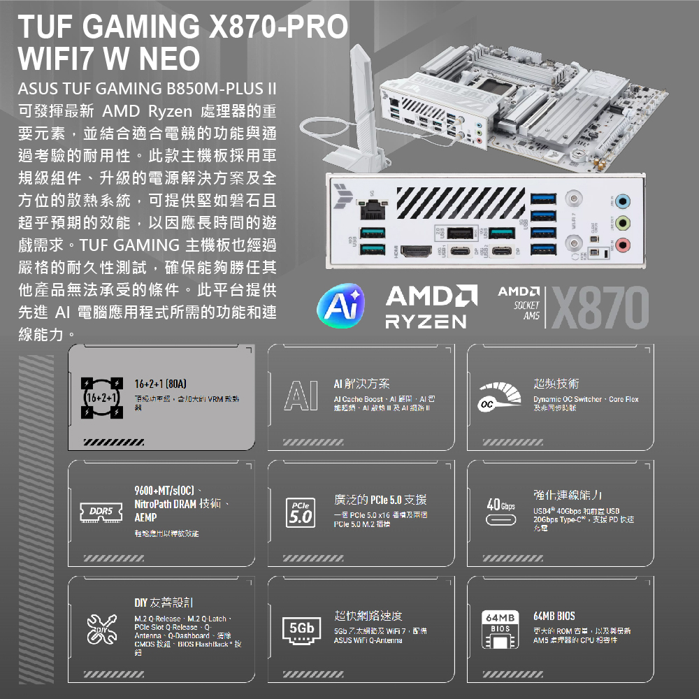 [搭U]華碩 TUF GAMING X870-PRO WIFI7 W NEO
