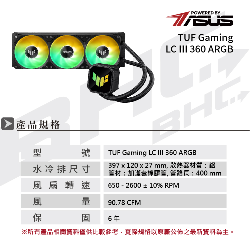 華碩 TUF GAMING LC Ⅲ 360 ARGB 水冷(黑)/6年