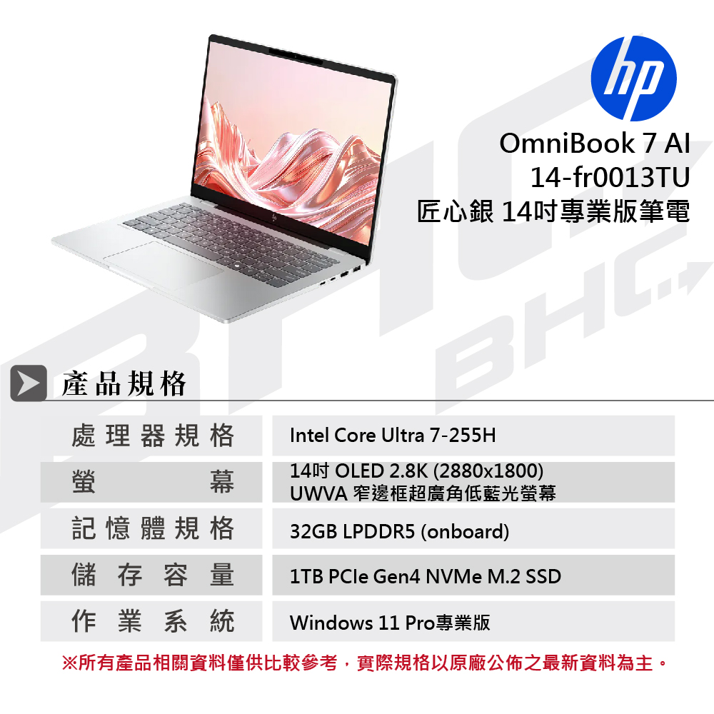 HP OmniBook 7 AI 14-fr0013TU / BQ2Q2PA 14吋筆電